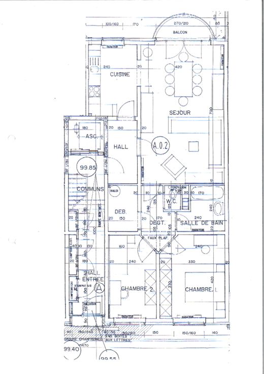 Hall d'entrée, cuisine équipée, salon / salle à manger de 30m² avec accès à un balcon avec vue sur le jardin commun, wc séparé, salle de bain, 2 chambres et un débarras.