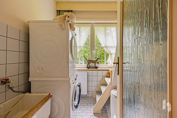 Gelijkvloers: inkomhal, woonkamer, eetkamer, veranda, keuken, toilet, badkamer, 2 slaapkamers, wasplaats