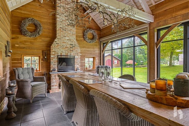 In de tuin is er een prachtig bijgebouw aanwezig met een een open haard en grote raampartij, waar je kan genieten van de tuin in elk seizoen.