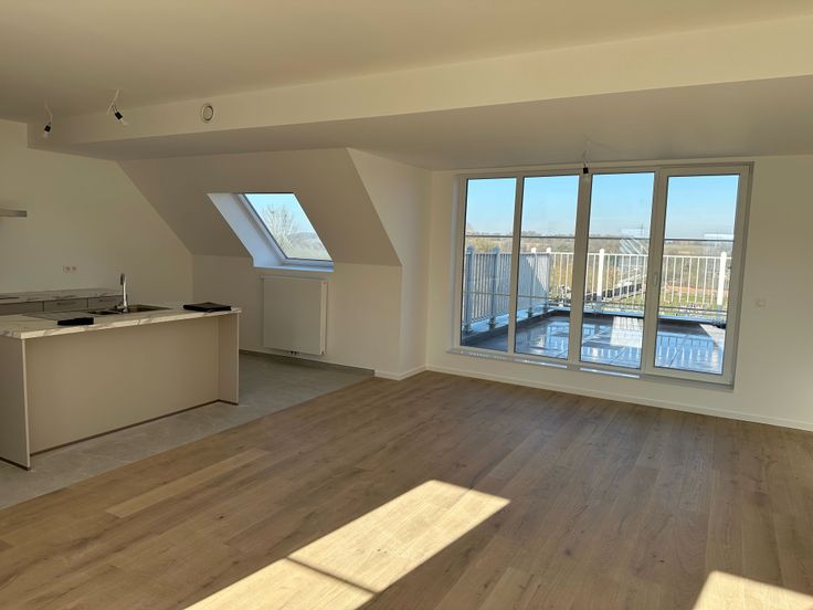 VAL D'EUGÈNE, superbe PENTHOUSE de STANDING au 3e étage d'une construction neuve à taille humaine avec ascenseur . Ce penthouse hyper lumineux, traversant et aux finitions soignées vous accueille sur 116 m² + 2 terrasses (19,3 m2 à l’ouest et 7,4 m2 au sud-est) et vous propose : Hall d'entrée avec chaufferie/buanderie équipée pour recevoir lave-linge et sèche-linge, WC séparé + lave-mains, superbe séjour de 50m² sur plancher semi-massif ouvrant vers les deux terrasses - Cuisine américaine hyper-équipée (taque vitrocéramique, hotte, four, réfrigérateur, congélateur, lave-vaisselle et espace de rangements séparé. Hall de nuit, suite parentale de 20m² : chambre et salle de douche (douche italienne, meuble évier, sèche-serviettes), 2ème chambre de 15,9m², salle de douche (douche italienne, meuble évier, sèche serviettes) - Parquet semi-massif et carrelage au sol. . Appartement "basse énergie"