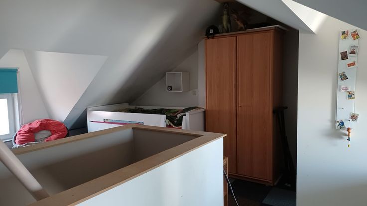 Op de eerste verdieping zijn er twee ruime slaapkamers en een nieuwe badkamer met wc, dubbele lavabo, douche én ligbad. Via een vaste trap ga je naar de 3de heel ruime slaapkamer op de zolderverdieping. Het dak werd héél goed geïsoleerd zodat deze hiervoor zeer bruikbaar is.