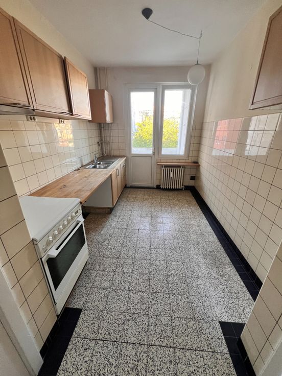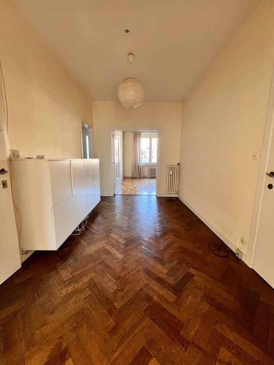 Vlakbij het metrostation Mérode, in een kleine mede-eigendom zonder lift, te renoveren appartement met 2 slaapkamers bestaande uit: een inkomhal, een keuken met loggia, een woonkamer, een badkamer, een apart toilet, twee slaapkamers en een kelder. Weinig kosten, rustige straat. Peb: E+ 231kwh