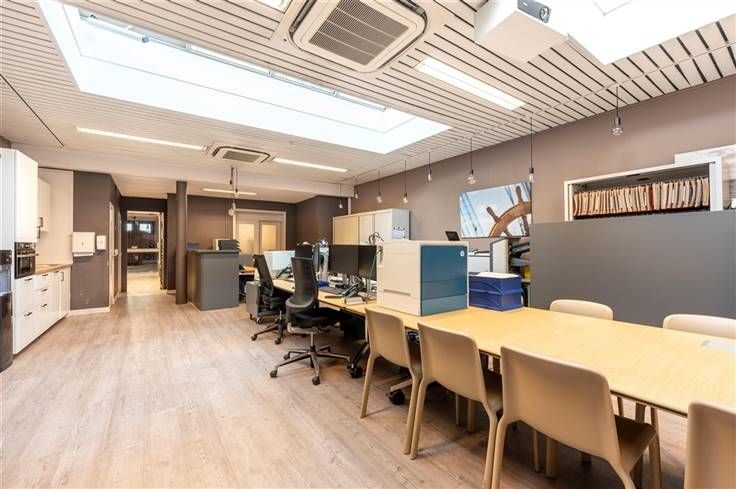 Kantoor te koop langsheen de Amerikalei in Antwerpen, vlakbij Het Vlinderpaleis. Het pand geniet van een uitstekende bereikbaarheid zowel met de wagen als het openbaar vervoer. Het gebouw bestaat uit vier bovengrondse verdiepingen (ca. 448 m²) en een kelderverdieping (ca. 91 m²). De huidige indeling voorziet op heden een mix van landschapskantoren en vergaderruimtes of afgesloten kantoren.