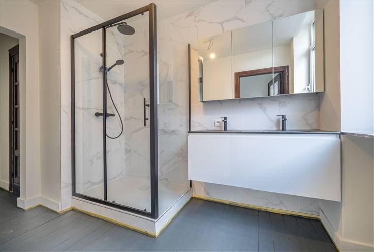 Zie www.berth.be voor meer informatie en attesten Een mooi, volledig gerenoveerd appartement met 1 slaapkamer en terras, gelegen op de eerste verdieping van een kleinschalig gebouw (= weinig of geen gemeenschappelijke lasten), gunstig gelegen op 500m van het Park van Vorst en op 900m van het Dudenpark: gemeenschappelijke traphall toegang gevend tot het appartement, slaapkamer 1 (3m55x4m40) langs de straatzijde, aanpalende badkamer (2m00x3m00) met douche, meubel met 2 wastafels en WC, zitruimte (3m80x4m25) uitgevend op het terras, ruime, ingerichte keuken (3m40x2m90) met eethoek, terras aan de achterzijde (0m95x2m00), plafondhoogte v/h appartement: 3m00 + ondergronds: 2 privatieve kelders (inbegrepen in de prijs) Centrale gasverwarming (nieuwe, individuele condensatieketel), dubbele en driedubbele beglazing (raamprofielen in PVC), de elektrische installatie is conform tot 2049, de originele plankenvloer werd volledig opgeschuurd en opnieuw geolied, alle muren werden bepleisterd én geschilderd, het appartement is vrij van gebruik, verkoop onder registratiebelasting: 12,5% met de mogelijkheid tot het bekomen van een abattement/vrijstelling op een bedrag van 200.000 EUR, geen gemeenschappelijke lasten