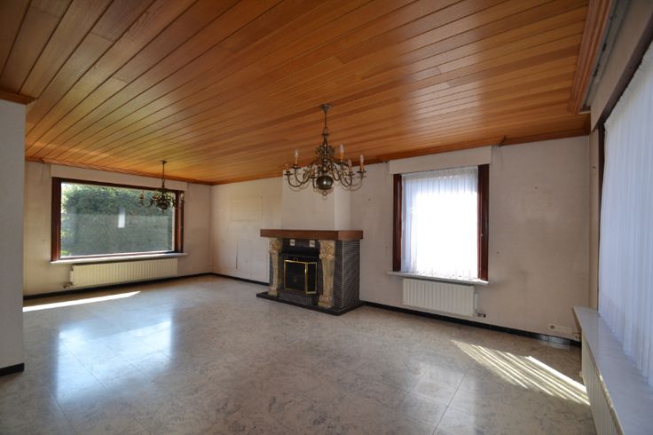 Via de inkomhal komen we in de lichtrijke leefruimte (met zicht op de tuin en de voortuin), bestaande uit het salon (met gezellige haard) en de eetplaats. Aansluitend, eveneens met zicht op de tuin is er de keuken met een even grote bijkeuken en de keukenberging. Grenzend aan de nachthal zijn er de garage (met regenwaterpomp), het bezoekerstoilet, de badkamer (wastafel, ligbad en aansluiting wasmachine) en 3 slaapkamers.