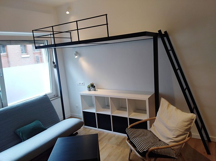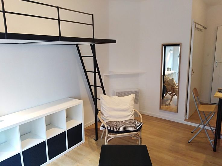Pièce de séjour : Bureau amovible, penderie, armoires de rangement, lit mezzanine, canapé lit, fauteuil….