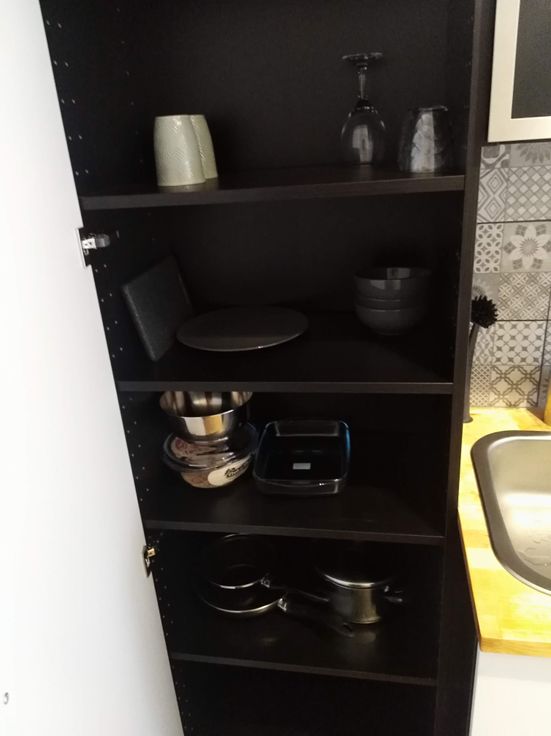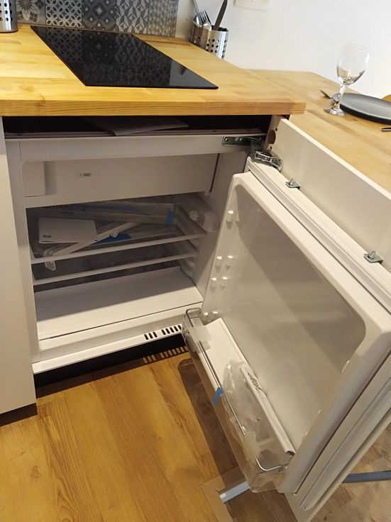 Cuisine : taque, hotte, frigo/congélateur, micro onde. Bar, nombreux rangements.