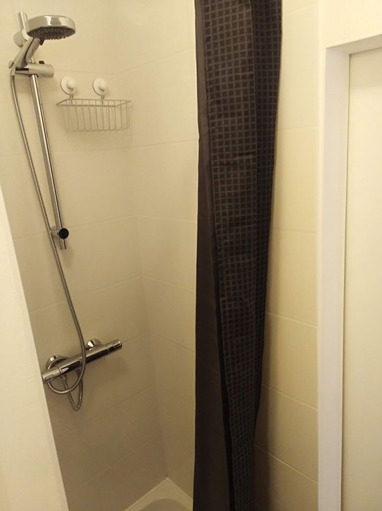 Salle de bain : douche, évier, WC
