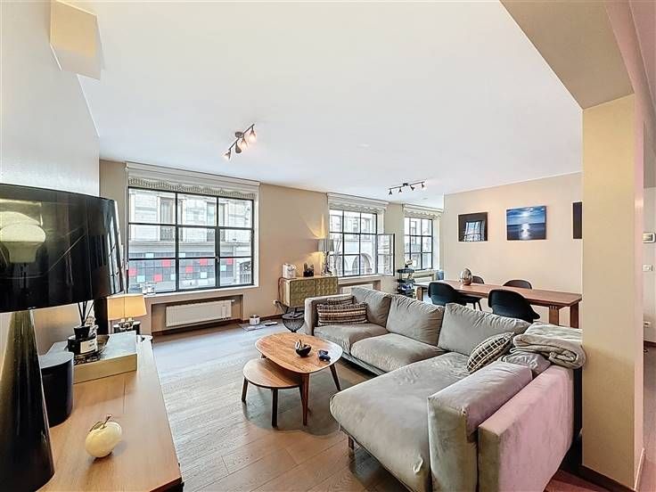 Bezoek deze woning met Josette: 0475/51.38.17 // In het stadscentrum, prachtig appartement met 2 slaapkamers van ±117 m² met balkon gelegen op de 1e verdieping van het prachtige beschermde Mondiale-gebouw (1936) in het historische hart van Brussel. Dit appartement, in perfecte staat, werd in 2006 volledig en kwalitatief gerenoveerd. Het bestaat uit een inkomhal, een terras van ±3 m² op het westen, een woonkamer van ±40 m² met een volledig ingerichte open keuken, een apart toilet met wastafel, een hoofdslaapkamer van ±16 m² met aangrenzende badkamer (twee wastafels, ligbad, douche, wasruimte), een tweede slaapkamer van ±10 m² met aangrenzende badkamer (douche, wastafel), kelder. Mogelijkheid om 3 beveiligde overdekte parkeerplaatsen met elektrische terminals te verwerven voor 50.000€ per plaats. Uitzonderlijke ligging in een voetgangersstraat tegenover de Munt met zeer veilige toegang, in de directe nabijheid van de Grote Markt, talrijke winkels, restaurants en vervoersmiddelen (centraal station en Zuidstation, metro, bus). Het gebouw biedt ook directe toegang tot het prestigieuze hotel "The Dominican" en zijn vele diensten. Individuele gasketel, dubbele beglazing, video-intercom, lift, fietsenstalling. Huidige huurprijs: 1.350€. Kosten: ±274€/maand (beheer, verzekering, gemeenschappelijke elektriciteit, schoonmaak, koud water). Huurverplichtingen dienen te worden nageleefd. De afmetingen dienen uitsluitend ter informatie. EPC: C- !