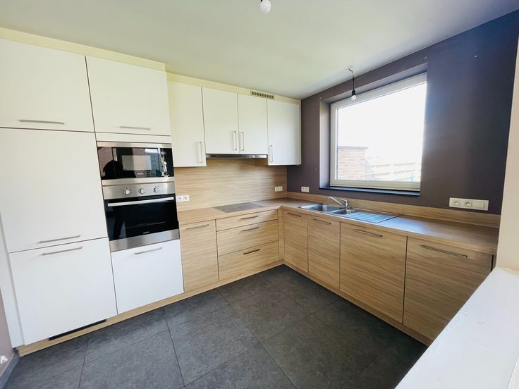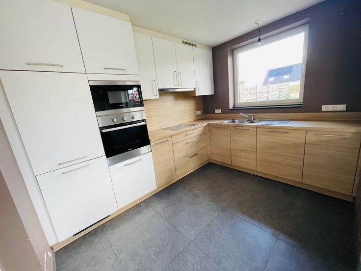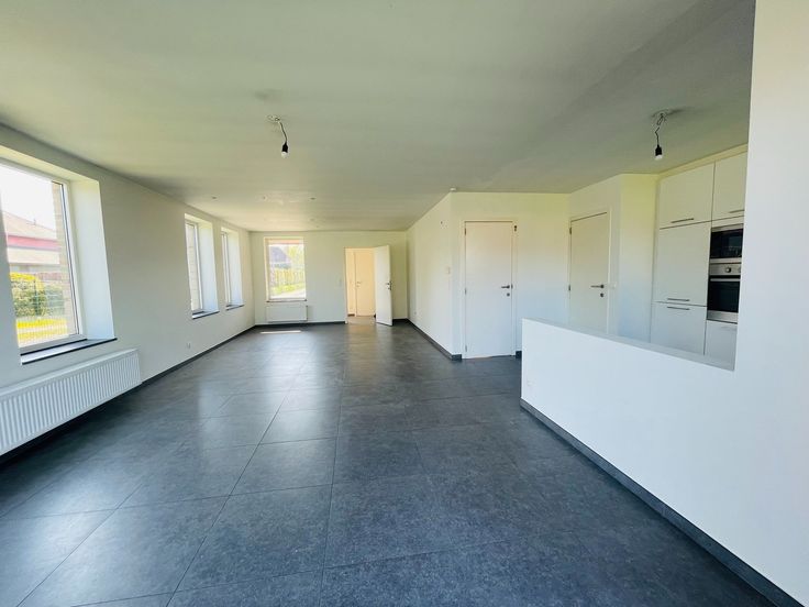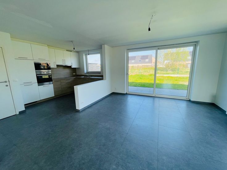 omvat: Inkom met gastentoilet en vestiaire, ruime lichtrijke living, ingerichte open keuken met alle apparaten (oven, microgolgoven , fornuis, frigo en vaatwas), berging, garage met plaats voor wasmachine en droogkast.