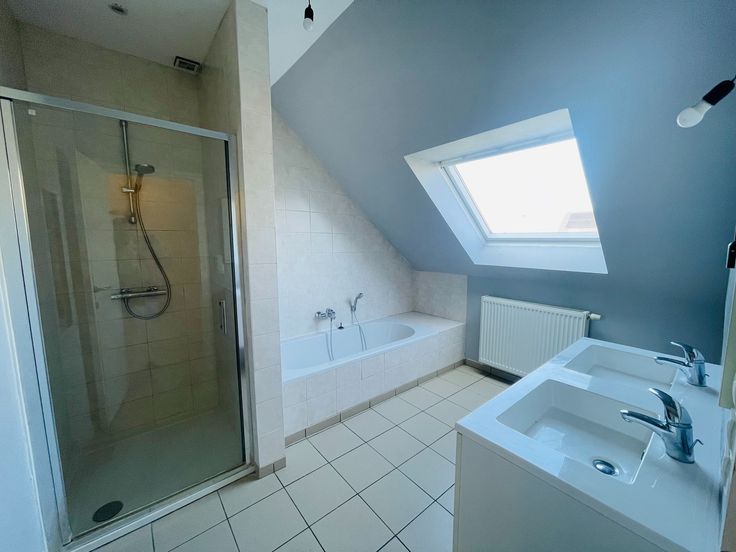 1é Verd :nachthal, 3 ruime slaapkamers, mooie berging,apart toilet, badkamer met ligbad, aparte douche en dubbele lavabo.