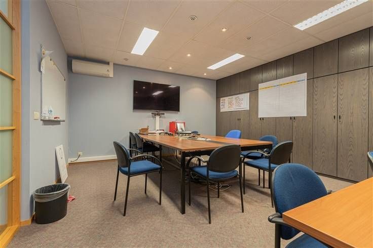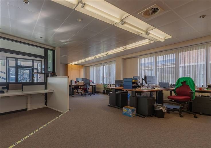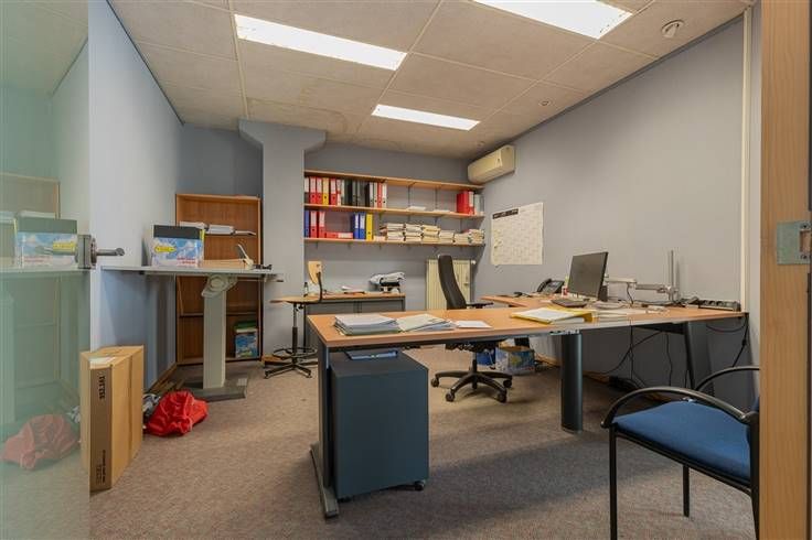 Het pand biedt een combinatie van kantoor-, vergader- en opslagruimtes die geschikt zijn voor diverse doeleinden. Op het gelijkvloers bevindt zich een ruime onthaalruimte, meerdere burelen, een vergaderzaal, een uitgeruste keuken, sanitaire voorzieningen en een grote opslagruimte met sectionale poort en een vrije hoogte van 7 meter. Dankzij de daglichtstraat geniet de ruimte van een aangename lichtinval.