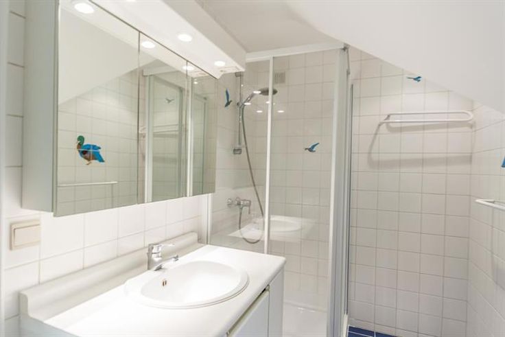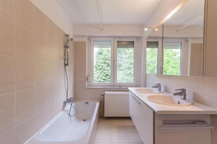4 slaapkamers (tegelvloer): 19,7m² / 13,9m² / 16m² / 6,6m² (deze laatste met ingebouwde kasten) - badkamer met bad met douche, 2 lavabo's in meubel - douchekamer met douche, 1 lavabo in meubel, ensuite bij slaapkamer van 19,7m² - toilet - wasruimte 6m² (tegelvloer).