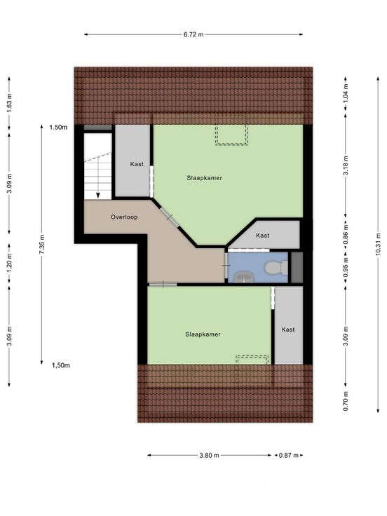 1ste verdieping: traphal, slaapkamer 2 met berging, slaapkamer 3 met berging en douchekamer.