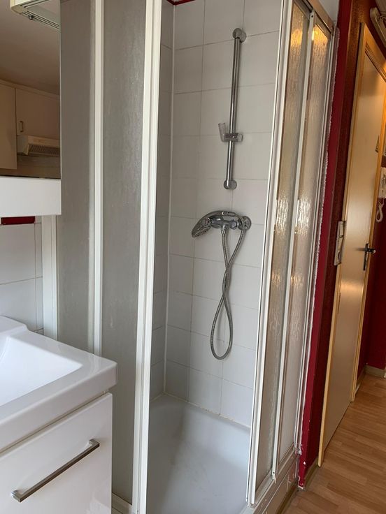 De studio beschikt over een eigen keukentje, douche en toilet. Met eigen terras.
