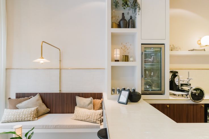 In 2024 onderging het interieur een grondige renovatie door de Antwerpse interieurarchitecte Margot Bertels, waarbij haar eigentijdse en verfijnde stijl perfect tot uiting kwam. De grote ramen aan de voorzijde vullen de ruimte met overvloedig natuurlijk licht, wat bijdraagt aan een frisse en uitnodigende werkomgeving.