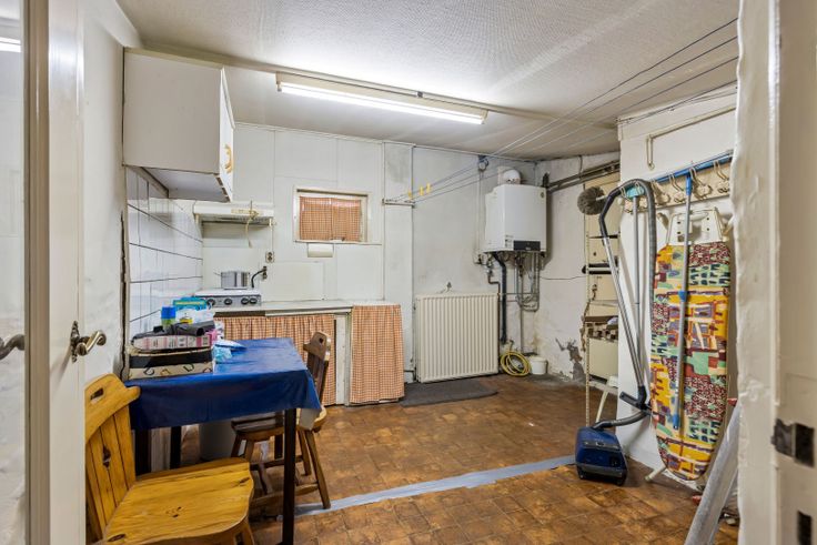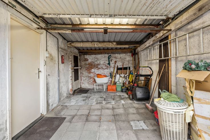 Bij binnenkomst kom je in een aparte inkomhal die toegang geeft tot de leefruimte. De woning beschikt over één slaapkamer, een functionele keuken en een badkamer. De ruime tuin en de lange oprit, die leidt naar de garage, zorgen voor voldoende parkeergelegenheid en buitenruimte.
