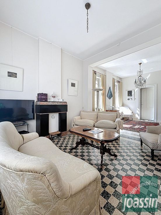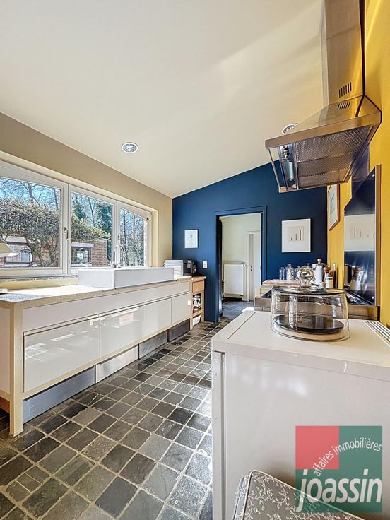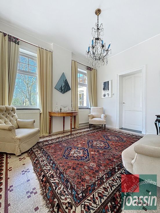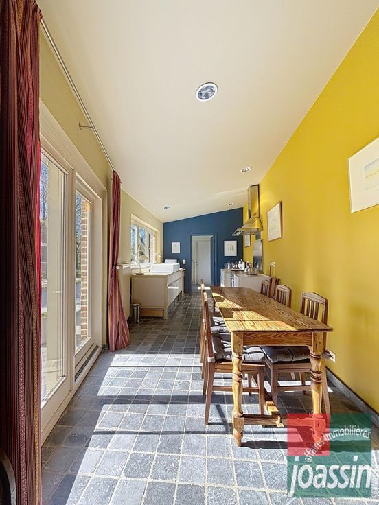 Joassin Affaires Immobilières a le plaisir de vous présenter cette propriété d'exception, avec un terrain à bâtir, situé dans le paisible village d'Hollogne-sur-Geer. La propriété se compose: au rez-de-chaussée: d'un hall d'entrée avec escalier de maître, d'une vaste salle à manger de +/-18m², d'un lumineux living de +/-27m², d'une cuisine équipée de +/-19,5m² avec coin déjeuner et accès à une magnifique terrasse en pierre bleue, d'une salle de douche avec toilette, d'une buanderie et d'un espace de stockage. Au 1er étage: un hall nuit donnant sur 3 chambres (+/-18-14-12m²) et une salle de bains avec toilette. Au deuxième étage: un hall de nuit, un grenier aménagé/chambre de +/-24m² et un grenier de rangement. Au sous-sol: un hall, un local chaudière et deux caves de +/-11,5m² et 17m². Vous serez aussi séduit par ses extérieurs: une terrasse de +/-120m², un double garage fermé, de nombreuses places de stationnement extérieur et surtout un parc arboré d'une superficie totale de +/-4.990m² (pommier, noyer, poirier,...). Terrain à bâtir: +/-2890m² avec 11,5m en façade.