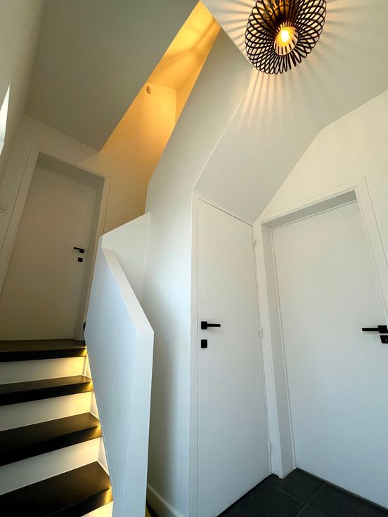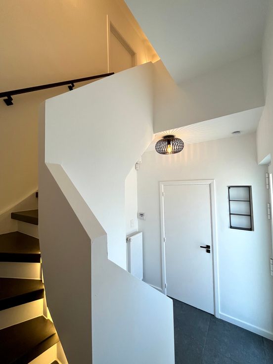 Dès l’entrée, vous serez accueilli par un hall d'entrée avec un escalier ouvert, un grand living, une cuisine super équipée et un wc séparé.
