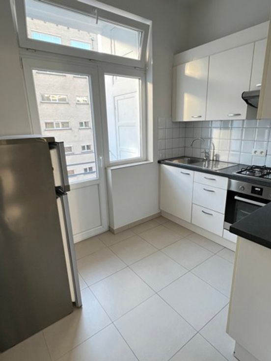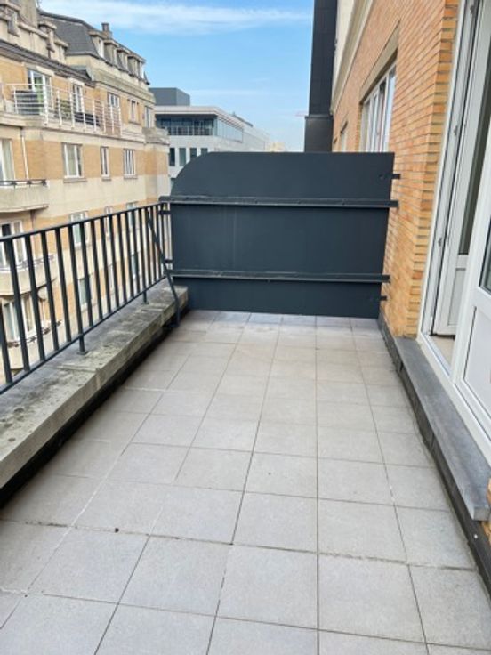 Visites et/ou informations, !!! UNIQUEMENT !!! via e-mail : info@cmproperties.be   Au coeur du quartier Européen (métro Trône/Maelbeek), à proximité du Parlement Européen et de la place du Luxembourg, superbe appartement 1 chambre - de +/- 60m² - entièrement rénové en 2020 et rafraîchi en 2025 - avec grandes terrasses (+/- 11m²) - situé au 5ème et dernier étage d'un immeuble résidentiel (avec ascenseur). L’appartement se compose comme suit :  Hall d'entrée  -  WC séparé  -  séjour et salle à manger (+/- 15m²)  -  cuisine équipée (meubles, évier, hotte, réfrigérateur, taques au gaz et four)  -  une grande terrasse (+/- 8m²) à l’avant et une 2ème terrasse de +/- 3m² à l’arrière Terrasse  -  1 chambre à l’arrière (+/- 16m2)  -  Salle de bains (évier, bain, coin buanderie)  et une cave.  Couverture des sols : Carrelage. Confort : Porte Blindée - Châssis PVC avec double vitrage - chauffage central. Libre : Immédiatement.   Loyer : 925€  + 150€ de provisions pour les charges (communs, chauffage, eau chaude, ascenseur). Visites et/ou informations, uniquement via e-mail : info@cmproperties.be  - www.CMPROPERTIES.be PEB G - 347kWh/(m².an) - Co2  91kg/(m².an)
