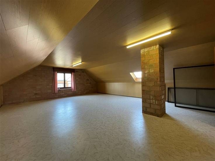 1er Étage : hall de nuit, chambre 2 (+/- 30m²) et grenier servant de débarras uniquement (+/- 56 m²)