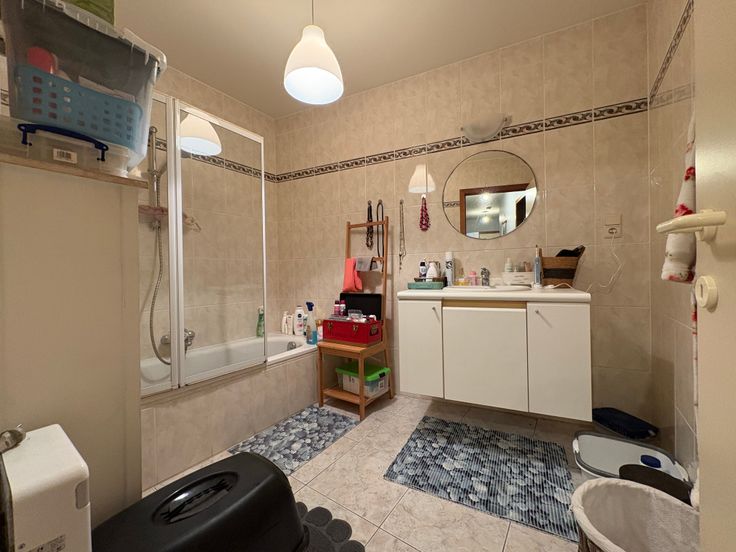 Het appartement is gelegen op het gelijkvloers en bestaande uit een inkom, woonkamer, open keuken, badkamer (bad en lavabomeubel), 2 slaapkamers, berging, toilet, terras.