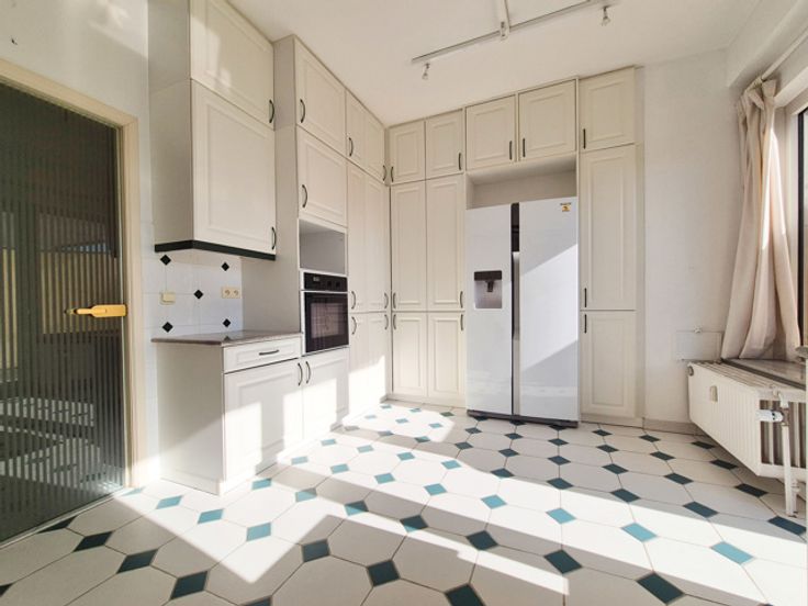 Au calme, dans un parc magnifique avec piscine et tennis, TREVI BRABANT vous propose un bel appartement lumineux de ±200m² situé au 4ème étage avec ascenseurs. Il offre un vaste hall d'entrée avec WC et vestiaire, un séjour de ±60m² donnant accès à la terrasse SO, cuisine entièrement équipée avec balcon, 3 chambres (±24, 20 et 18m²) toutes avec placards intégrés avec vue sur le parc superbement arboré, salle de bain avec bain et douche à l'italienne, grande cave au sous-sol. Locaux vélos communs. PEB B. Provisions pour les charges 460€ (dont chauff. et eau chaude, piscine extérieure chauffée, terrain de tennis, concierge, communs.. ). Disponible immédiatement. Colocation acceptée.