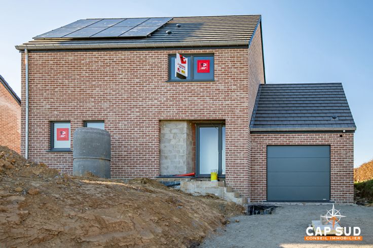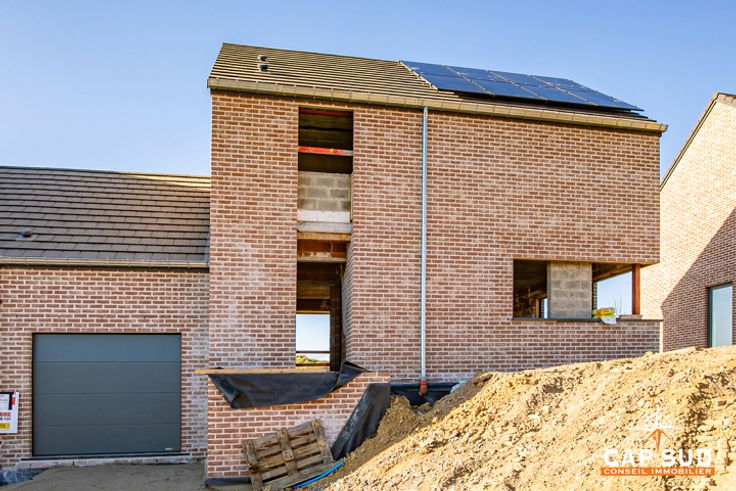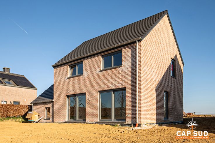 Emménagez dans une maison neuve, équipée - entre autres - d'une pompe à chaleur, d'un chauffage par le sol, de panneaux solaires, et d'une citerne d'eau de pluie, et profitez d'un cadre de vie paisible et confortable !