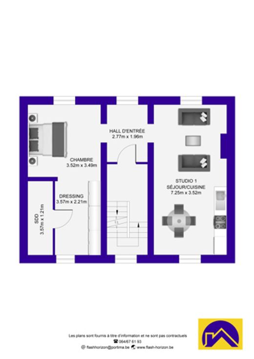 Appart du 2ème étage se compose : d'un hall d'entrée, d'un séjour avec cuisine équipée (four, hotte, taque vitro, pas de frigo), une salle de douche avec buanderie (douche, w.c, lavabo simple), 1 Ch & 1 pièce bureau. Actu. loué 500€/Mois + 30€ de ch. com. - PEB G.