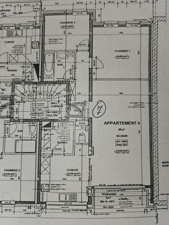A voir. L'immeuble se présente comme suit: 2 garages privatifs au rez de chaussée,2 appartements au premier étage et 2 appartements au 2°étage. Espaces verts à l'arrière.