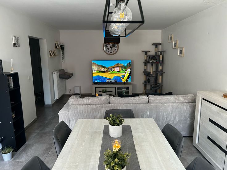 Très bel appartement 2 chambres , situé au 2°étage dans un immeuble de 4 appartements. Composé d'une cuisine ouverte hyper équipée s'ouvrant sur un très lumineux living avec terrasse. 2 chambres, salle de bains(baignoire),buanderie. Finitions haut de gamme, matériaux de qualité.