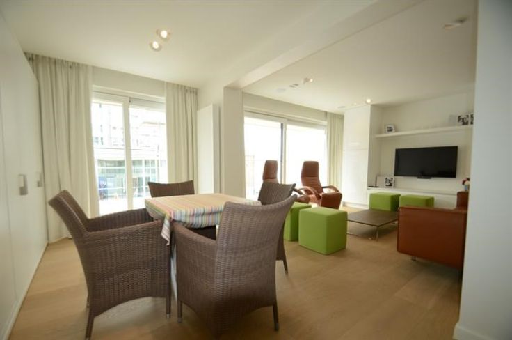 TE HUUR: Mooi appartement met zijdelings zeezicht, centraal gelegen op het Lichttorenplein Indeling: inkom met vestiaire en gastentoilet, lumineuze woonkamer met open en volledig ingerichte keuken. Ruim zonneterras met west-oriëntatie en zeezicht, 3 slaapkamers met telkens een privatieve douchekamer waaronder 1 douchekamer met toilet.