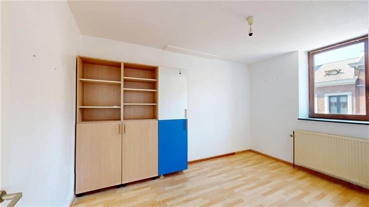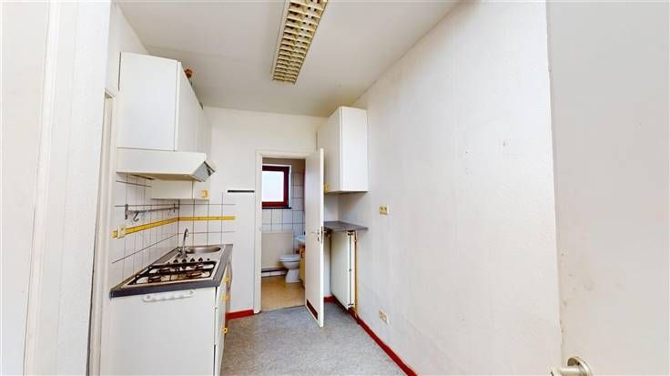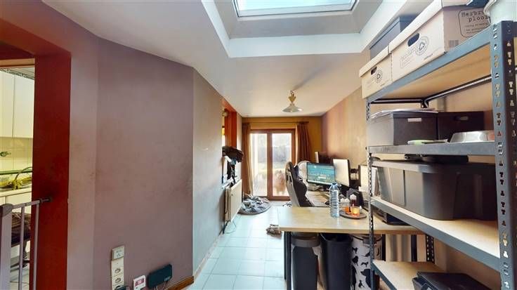 Rez : hall d'entrée (+/-7,5 m²), salon (+/-13 m²), cuisine (+/-10 m²)/salle à manger (+/-9 m²) et bureau (+/-14 m²) avec accès à l'extérieur, espace chambre/mezzanine (+/-8 m²), sdb (+/-4 m² avec douche et lavabo), 1 w.c. ind. (+/-1 m²).