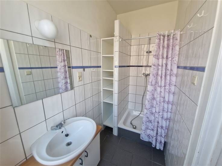 1er étage : palier (+/-2 m²), hall de nuit (+/-2 m²), possibilité 2 chambres (+/-13 et 10 m²), sdb (+/-4 m², avec douche et lavabo).