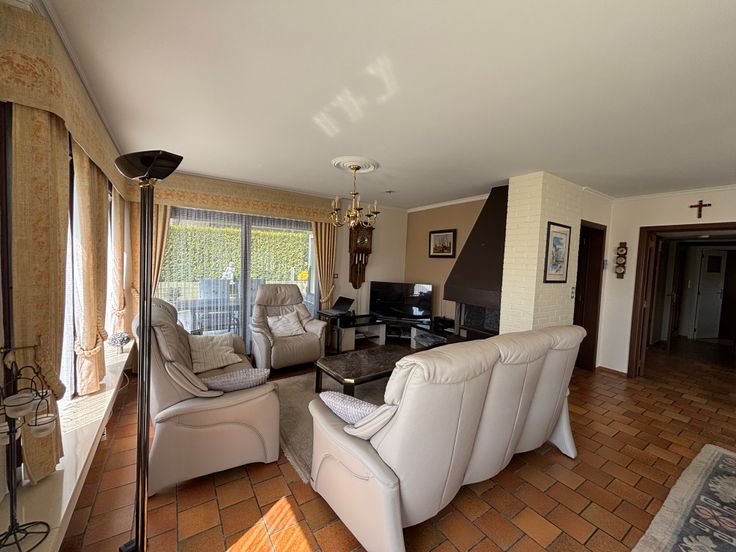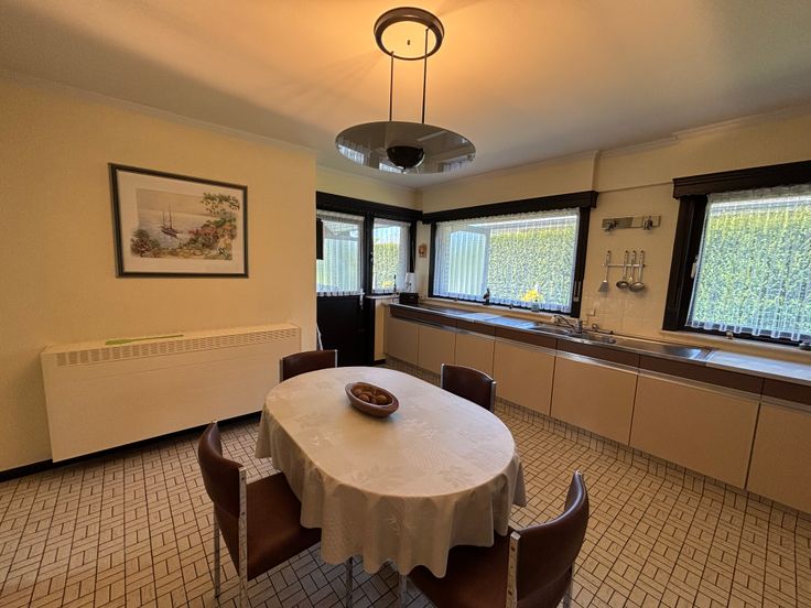 Deze openbebouwing is residentieel gelegen op de hoek met de Lindendreef (overwegend villa-bouw) en de Ter Duystlaan te Ninove. Het betreft een zeer rustige, landelijke omgeving. Door de vele vensterramen geniet U in de leefruimte constant van lichtinval en zon. Het pand werd oorspronkelijk gebouwd door de verkopers en werd altijd zeer goed onderhouden. Zo werd vrij recent een nieuwe verwarmingsinstallatie en badkamer geplaatst. Op het gelijkvloers bevindt zich een zeer ruime ling met salon en open haard, zeer grote keuken, inkomhal, 2 grote slaapkamers, waarvan één oorspronkelijk twee kamers, traphal, garage en bergruimte (brander en wasmachine). Kelder. Op het verdiep: één slaapkamer, tussenkamer, en zolderkamers (deze kunnen verder ingericht worden tot slaapkamer). De verdieping is bereikbaar met een gemakkelijke vaste trap. Extern de woning werd een tweede garage gebouwd met voorliggende staanplaats. Naast de prachtige siertuin rondom en naast de woning is er ook nog een groentetuin voor de groene vingers. Kortom deze woning is een absolute aanrader op de vastgoedmarkt. Maak daarom alvast een vrijblijvende afspraak op 0494 33 26 75 (Cooman Filip - BIV 508172)
