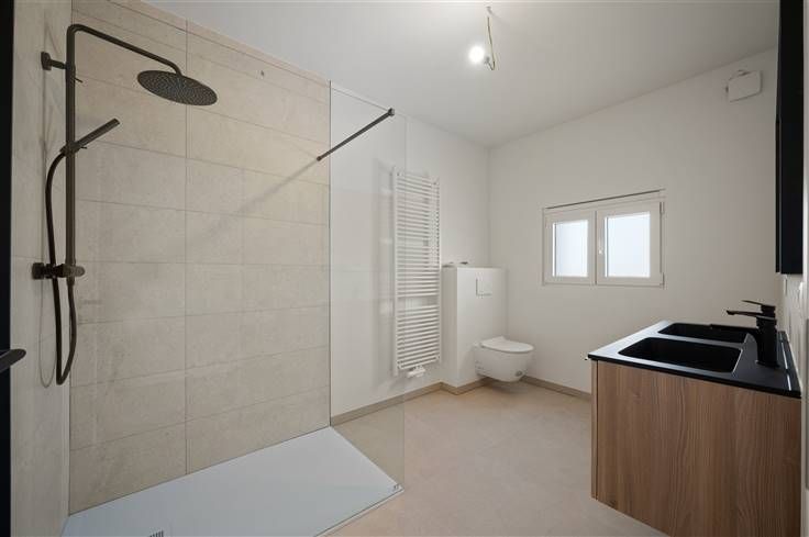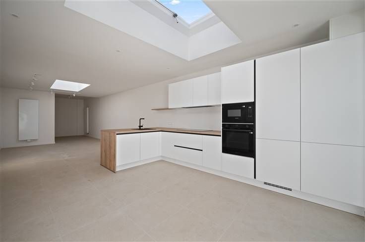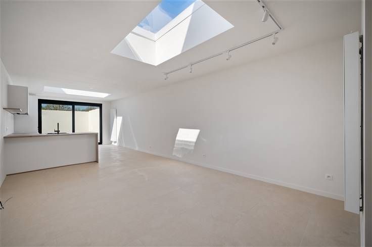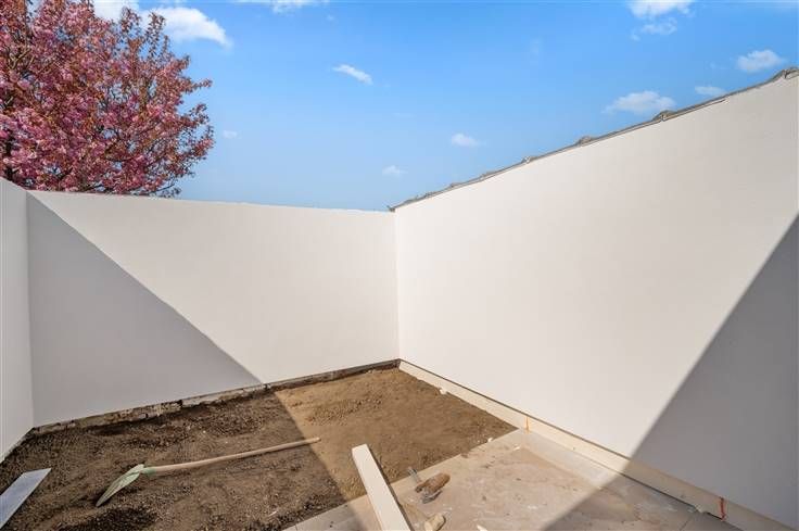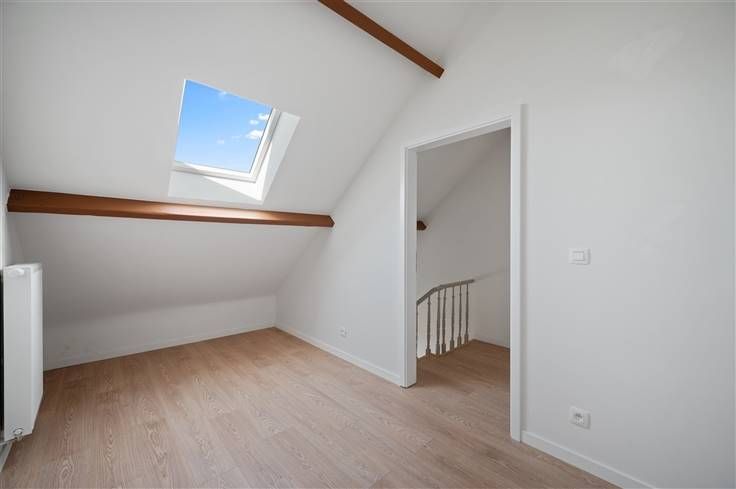 De Zemstbaan is een rustige woonstraat, vlakbij de E19-afrit Mechelen Zuid, met fietspaden langs beide zijden van de baan. Voor dit vernieuwde huis, kan u op de nieuw beklinkerde oprit, twee auto’s stallen (kabel voor laadpaal). De hagelwitte, goed geïsoleerde voorgevel, met sierpleister en plint in blauwe hardsteen, contrasteert goed met de zwarte ramen (superisolerend glas). Het vernieuwde dak, bedekt met Trespa en gegolfde dakpannen, wekt middels 9 zonnepanelen ook stroom op. Aan de voorgevel kan u met de eerste “kamer” alle richtingen uit. U kan er een bureel inrichten of er een wasplaats van maken. In de badkamer boven is immers nog een afvoer voorzien voor uw wasmachine. De leefruimte met open keuken, kijkt via een groot zwart schuifraam uit op het terras/stadstuintje. Opvallend zijn hier de aanwezigheid van drie hoge sierradiatoren, twee dakkoepels, led-spots, videofoon en voldoende stopcontacten. De greeploze, witte keuken omvat een rist apparaten: microgolf, oven, groot kookvuur, vaatwasser, plus koelkast en freezer. De authentieke verdiepingstrap met tussenniveau, is grijs geschilderd. De witte opdekdeuren, zijn voorzien van zwarte klinken. De opvallend goed verluchte nieuwe badkamer, omvat een inloopdouche met glazen wand, sierradiator, hangtoilet en een zwart dubbel lavabomeubel met houtaccenten. Buiten de grote kamer op de eerste verdieping, telt het huis nog twee kamers onder dak, waar het volume maximaal is gebruikt en de balken zichtbaar zijn gelaten.