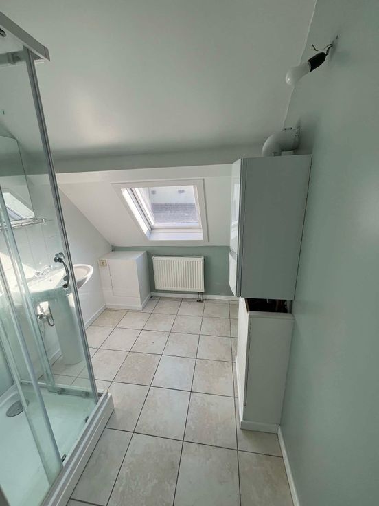 Appartement situé au 2ème étage d'une maison de caractère. Entrée privative, hall de jour, grand living lumineux avec cuisine ouverte, SDB avec équipement pour machine à laver, WC séparé, 2 chambres, hall de nuit, petit bureau et débarras. Chaudière au gaz à condensation individuelle, compteurs eau/gaz/électricité individuels, parlophone. Place de parking privée. A quelques minutes à pied de la grand place, des commerces et des transports en commun (gare et bus). Loyer 750€, 2 mois de caution.