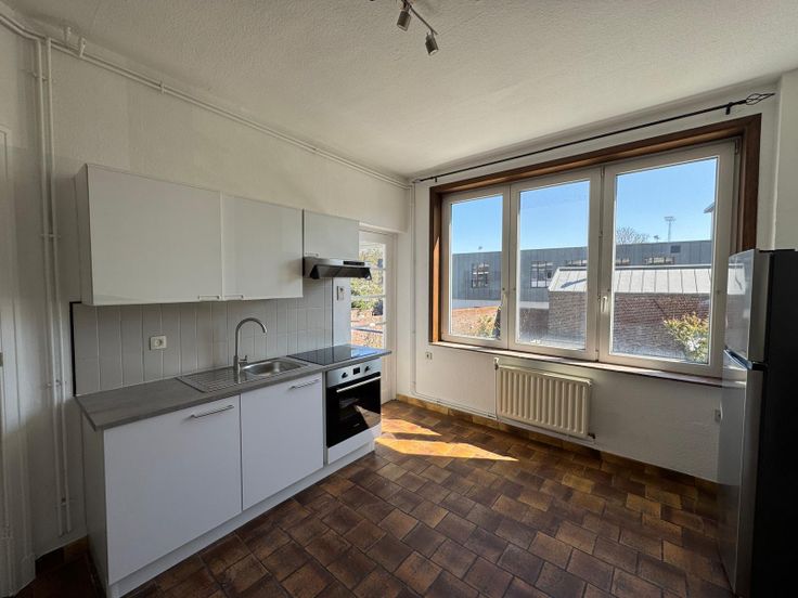 - à 1 CHAMBRE COMPLETEMENT MEUBLE +/- 60m2 :3eme étage Hall entrée+vestiraire+ sdb , wc séparé , cusine équipée+salon/sam 1 Chambres +balcon/terrasse /cave