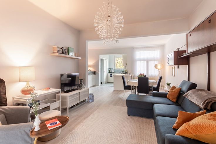 Lichtrijk en ruim appartement op de eerste verdieping van een klein gebouw op toplocatie aan de Jozef Verbovenlei vlakbij het Te Boelaerpark. Je komt binnen in het appartement via de veiligheidsdeur en treft ingemaakte kasten aan de linkerkant. De ruime open keuken met veel werkruimte is voorzien van een gasvuur met vijf kookpunten, een vaatwasser, een microgolfoven met stoomfunctie en een elektrische oven. De keukenfronten en de accenten geven karakter aan de ruimte die aansluit bij de lichtrijke woonkamer op laminaat. De slaapkamer bevindt zich aan de voorkant van het appartement met aansluitend een klein terras en de badkamer op tegels met ligbad met douchesysteem. Twee ruime kelders aanwezig. Vliegenramen aanwezig. Bulex ketel recent onderhouden. Dak conform 2050. Individuele meters.