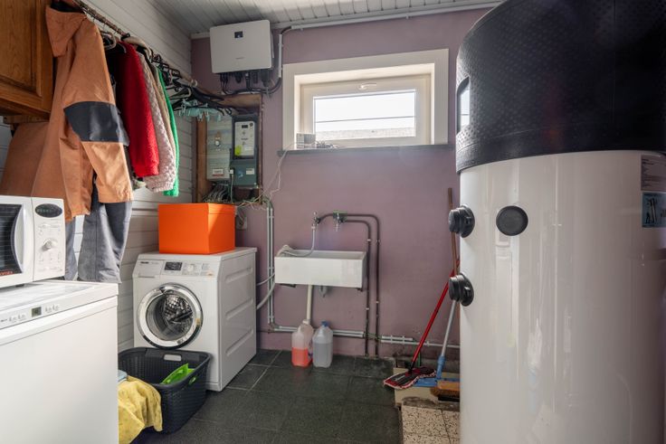 Na plaatsing van digitale meters, werd ook de elektriciteit volledig vernieuwd, met schema’s en conform keuringsattest. De woning wordt verwarmd met een condenserende gasketel, en er is tevens nog een houtkachel aanwezig.