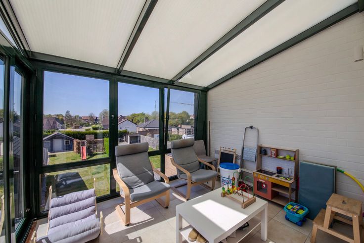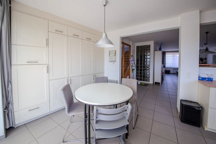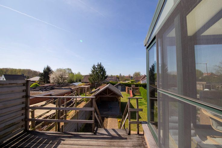 Deze woonst bevindt zich op wandelafstand van verschillende scholen, apothekers, eetmogelijkheden,… Op 2 minuten wandelen vindt u een ook een Delhaize. Zeer kindvriendelijke en rustige omgeving met veel wandelmogelijkheden in de buurt. We komen binnen in een ruime inkomhal die toegang geeft tot de garage en de trap naar die u naar het eerste verdiep brengt. Op het eerste verdiep vindt u een aparte wc, living en keuken. Hier aansluitend is ook een veranda met een terras. Via de afgesloten trappenhal in de living komt u op het 2de verdiep waar er 2 slaapkamers zijn (2de slaapkamer is volledig voorzien voor 2 slaapkamers) en een badkamer met bad en wc. Op de benedenverdieping vindt u een grote garage met ingebouwde kasten, een aparte wasruimte met kasten. Achteraan de garage vindt u ook nog een extra ruimte die kan gebruikt worden als bijvoorbeeld bureau. Hier vindt u ook nog een wc met een douche. In de tuin staat er een afdak waar u een gezellig terras kan maken en achteraan het perceel bevindt zich een mooi en droog tuinhuis. De tuin is bereikbaar via het terras op het eerste verdiep of via de garage via een garagepoort of deur van de extra ruimte. Als extra troef heeft de woonst zonnepanelen en een voordelige EPC-waarde D. Bezichtingen steeds mogelijk op afspraak: 0472/05.87.28