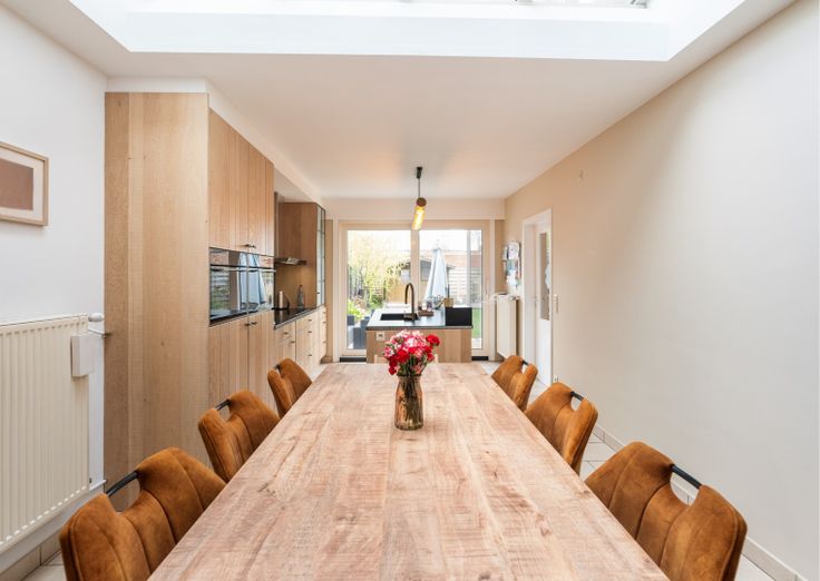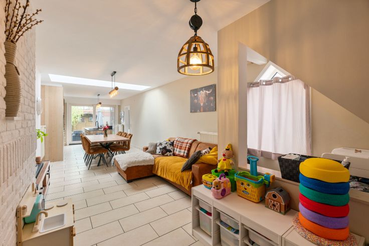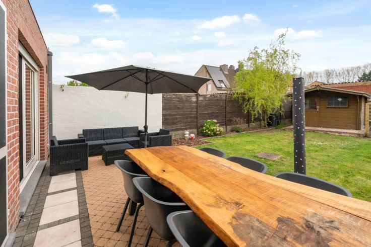 Op zoek naar een instapklare woning op een rustige, gezinsvriendelijke locatie dicht bij Brugge én Damme? Dan is deze charmante, verzorgde rijwoning in Koolkerke precies wat u zoekt. Gelegen in een doodlopende straat in een aangename wijk nabij de idyllische Damse Vaart, combineert deze woning rust en veiligheid met een uitstekende bereikbaarheid. In slechts enkele minuten bereikt u de invalswegen naar Brugge of Damme. De buurt is uitermate kindvriendelijk, met veilige straatjes waar kinderen zorgeloos kunnen leren fietsen, een sportterrein in de buurt én een bushalte op wandelafstand. Deze woning werd opgetrokken in 2005 en werd sindsdien perfect onderhouden en recent opgefrist, waardoor ze helemaal instapklaar is. Met een bewoonbare oppervlakte van maar liefst 145 m² biedt deze woning alle comfort die een modern gezin nodig heeft. Op het gelijkvloers bevindt zich een gezellige en lichtrijke woonkamer die uitkijkt op de rustige, zonnige tuin. Dankzij de recent geplaatste ruime lichtstraat geniet u hier de hele dag door van natuurlijk daglicht en een open, luchtige sfeer. De volledige woning werd geschilderd in zachte, harmonieuze tinten voor een warme uitstraling. De keuken werd enkele jaren geleden volledig vernieuwd en straalt kwaliteit en stijl uit. Ze is afgewerkt in massieve eik, voorzien van een robuust stenen werkblad, en uitgerust met een royaal waseiland. Alle hedendaagse toestellen zijn aanwezig: een inductiekookplaat, heteluchtoven, vaatwasser, ingebouwde koe