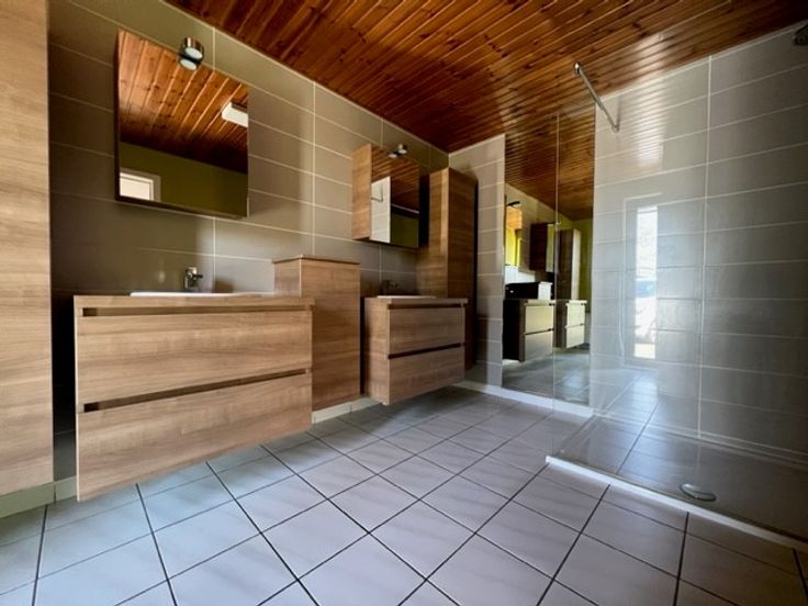 Deze villa omvat op het gelijkvloers een inkom met toilet, een ruime woonkamer met zit-en eethoek, een volledig uitgeruste keuken met eethoek, een berging, een bureel/ slaapkamer, een ingerichte badkamer en een inpandige garage. Het verdiep omvat vier volwaardige slaapkamers (mogelijkheid tot een vijfde slaapkamer).