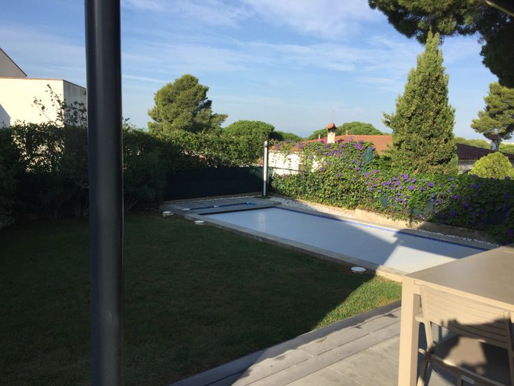 Tuin op het zuidwesten. Verwarmd zwembad met tegenstroomsysteem en elektrisch rolluik.