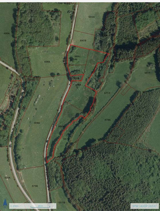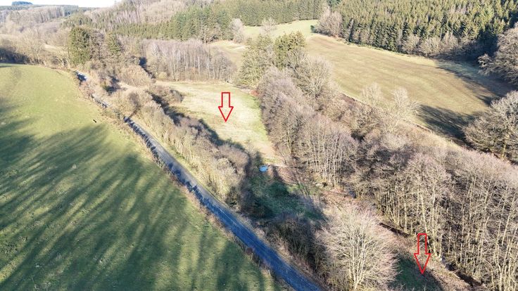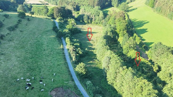 A Bastogne, Lutremange, très belle terre longée par un cours d'eau. Idéal pour location pour camps scouts, accès aisé le long d'un chemin empierré, bordure de cours d'eau, relief plat... Possibilité de vente la moitié du terrain, découpe cadastrale possible.