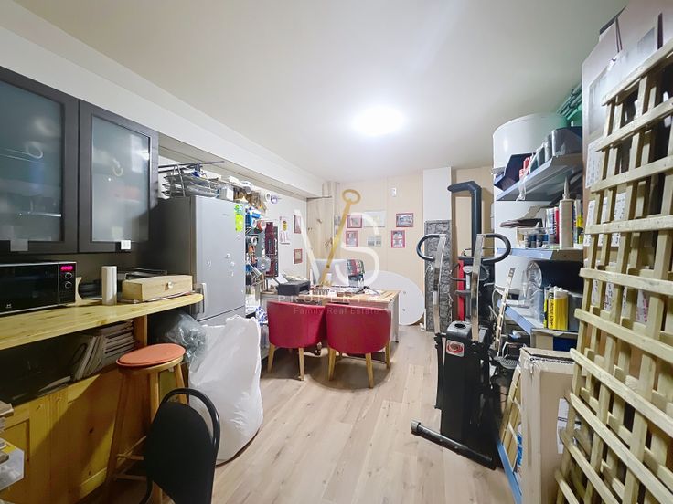 Vous y retrouveriez un atelier de +- 100m2, un bureau de 17,5m2 et un cellier de +- 11m2.