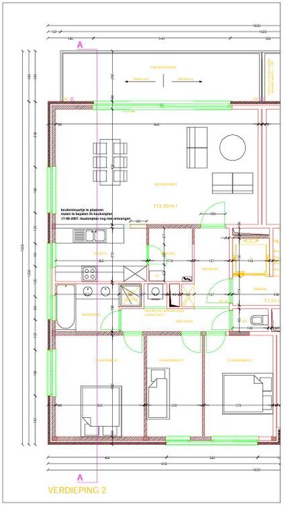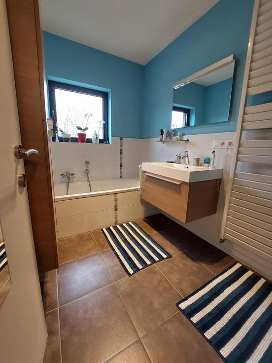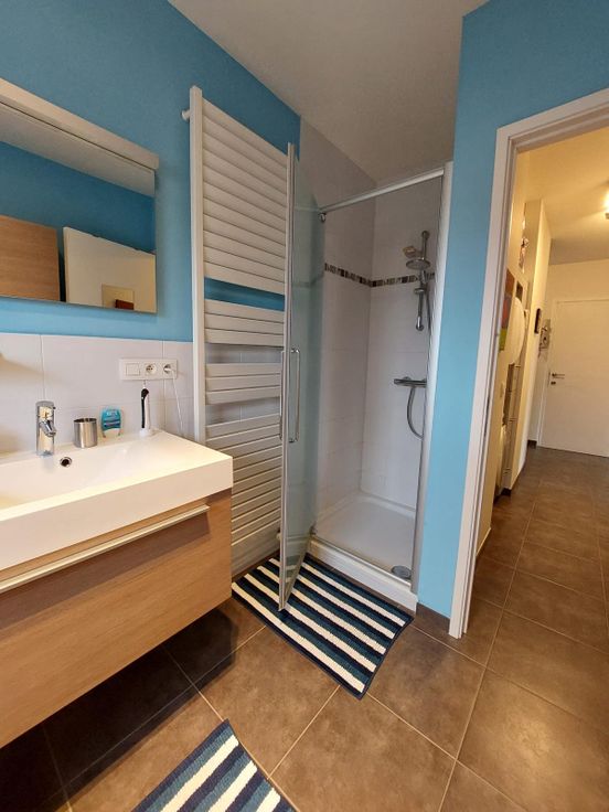 Zeer licht en warm appartement (2de verdieping met lift), bestaande uit hal, living, open keuken met eiland, groot terras, 3 slaapkamers, gastentoilet, badkamer (bad en douche), berging, garagebox en ondergrondse berging.