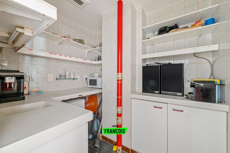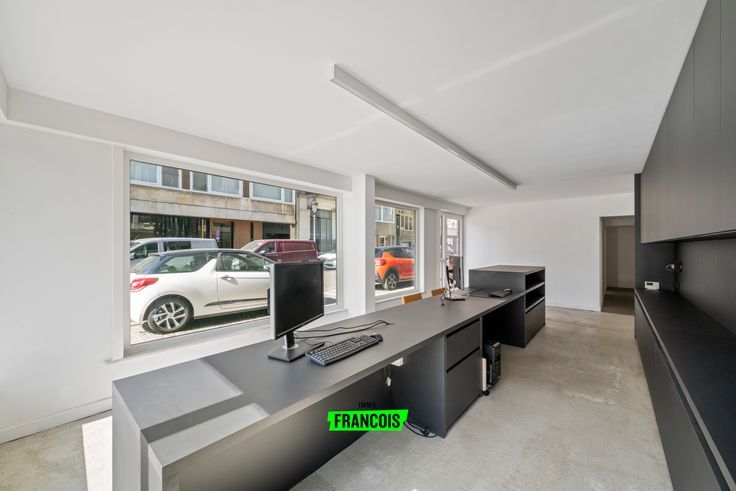 Indeling: het pand beschikt over een modern ingericht kantoor, twee ruime stockageruimtes, een verfrissingsruimte met zitbad en toilet, een kitchenette en een ruime kelder met directe toegang vanuit het commercieel gelijkvloers. Er zijn twee toegangen: één via het kantoor en een zij-ingang aan de Kemmelbergstraat.