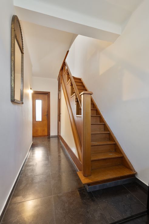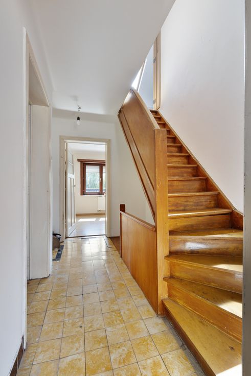 Nabij het dorp goed gelegen RUIME SOLIDE BURGERWONING met GROTE TUIN - gang met trap - ruime living - ingerichte keuken - kelder - veranda - buitenbergingen