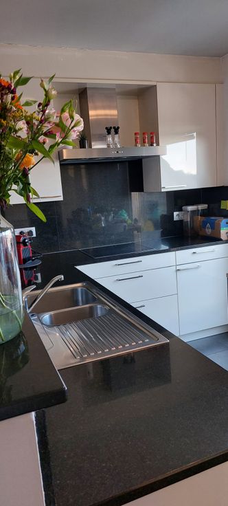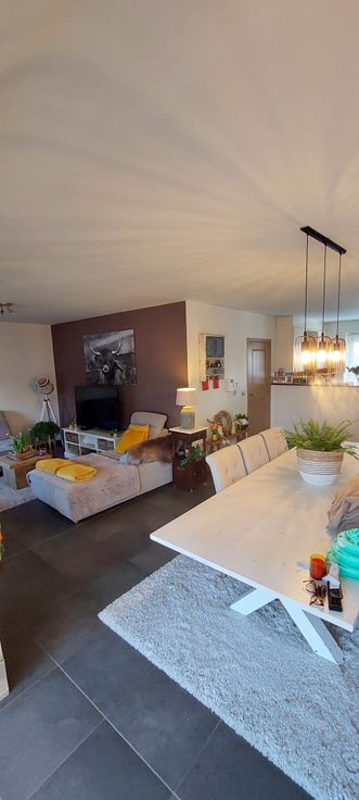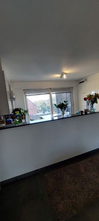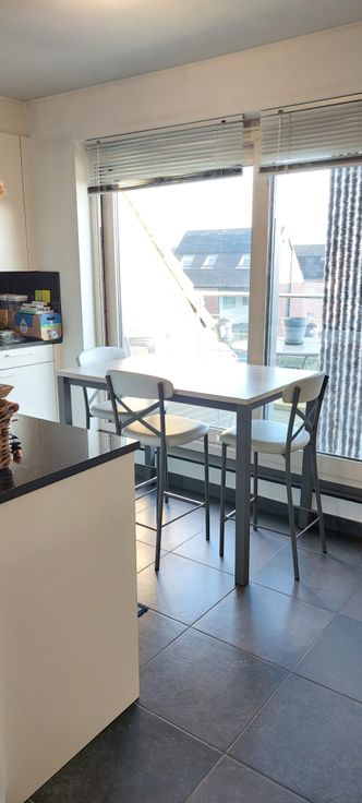 Duplex appartement in het centrum van Moerzeke Hamme op de tweede verdieping. een inkomhal met een woonkamer en open ingerichte keuken;